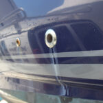 Wax is the main enemy of ceramics. Most manufacturers offer kits for switching over from wax-based to ceramic coatings; the Glidecoat kit mentioned above is typical. It’s important to clean and de-wax the surface before buffing the gelcoat to restore shine. If you try to buff off the wax, the heat of the buffer wheel will drive it deeper into the gelcoat. Even new boats should be cleaned and de-waxed, since there’s often mold-release compound and other imperfections on the surface. “Look closely at a new boat’s gelcoat—hold the light on your phone four or five inches from the surface,” said Westhorpe. “You’ll often see water and swirl marks which will show up under the ceramic.” Even if you de-wax carefully, you can still get stung, since some buffing compounds contain wax. While there are many products that will do a good job at prepping the surface, Westhorpe said it’s safer to use the products suggested by the manufacturer because you know there’s no wax in them. And always apply two coats of ceramic; the first coat fills and seals the gelcoat, and the second coat provides the gloss.