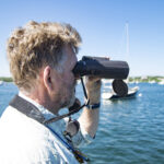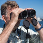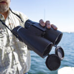 The great thing about the new HX 15 x 56 binoculars from Steiner is the clarity they offer at great distances. By comparison, glasses with the 7 x 50 configuration (more typical for the marine realm) have considerably more magnification and larger objective lenses for better light-gathering at dusk or after dark. Because of this extra firepower the Steiners are heavy, however; I had to stabilize them by resting my elbows on my knees while focusing.—B.P.