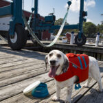Every good boatyard needs a very good boy. If you work for treats like Charlie does, the dog days of summer don’t seem that long—what with a canine life jacket that conforms to a dog’s natural swimming position so you can hit the water. Throw in a toy that floats and glows in the dark, and a collapsible bowl? Your tail starts wagging immediately!—S.M.