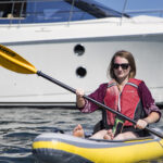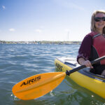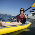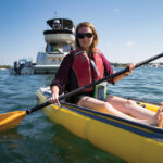 Intern Carly Sisson (pictured above) found herself testing the versatile Airis Sport Inflatable Kayak from Walker Bay. Some things she liked: “The cool thing about this kayak is it only weighs 20 pounds,” Carly says, “and it folds up into a backpack so it’s very easy to transfer onto your boat.” Also, bungee tie-downs are great for transporting gear, and an oversized rear skeg offers solid tracking performance. —S.M.