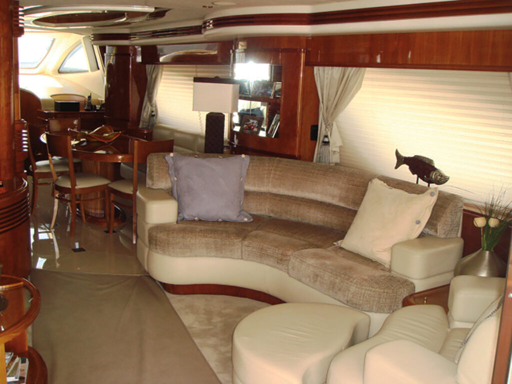 By today’s standards, this boat’s Stefano Righini-designed lines may seem pedestrian at first glance. She’s not going to jump out at anyone for any other reason than perhaps her size in some marinas. However she is pleasantly sleek and nicely understated, and her Italian design has held up well over time. What’s more, the particular vessel I checked out this past fall in Ft. Lauderdale had shipshape gelcoat, owing to the fact that she had lived most of her life in the dry environs of San Diego.