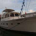 Built in China for the Australian market, the Cresta 70 Motoryacht is one of the first boats you come across at the Sanctuary Cove show. With sweeping lines and impressive fit and finish, it’s not a bad way to kick things off.