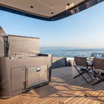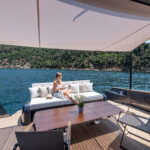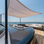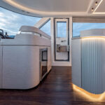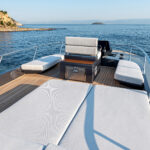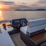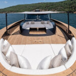 Alen also prioritizes customization. My test boat was a galley-down version owned by Ozcan. The second hull is so customized as to nearly be a different model. The owner had the mold split and added a few more feet to the hull. He is using the extra space to put a media room on the accommodations level where the galley is on hull number one. Besides the extra space, he says the extra length helps give the boat the sleeker aesthetic, which he desired. And far from using his yacht as a dayboat, the owner plans to live aboard for his first few months once he takes delivery in June. “Why not?” he asked me as he nestled into a $40,000 couch in the salon designed by Molteni&C. “We’re going to take her to the South of France and see some friends. Who wouldn’t want to spend time on a boat like this?”