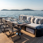 I was able to put those engines to work on the Atlantic. The night before, Ozcan told me he thought it was going to be too rough to run a sea trial, but by the morning the seas had calmed from 6-footers to 4-footers, and the boys at Alen were feeling game. The 77 handled really well in the slop, cresting the waves with confidence and landing softly in the troughs. She isn’t breaking any speed records with an observed top hop of 29.5 knots in the inlet, but again this is a yacht that prioritizes comfort over sportiness.