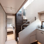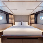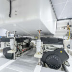 The Alen’s engine room, which houses twin Volvo Penta IPS1350s was a pleasant surprise. There’s almost seven feet of headroom, good access to both of the engines plus the Cummins generator, and a white gelcoated sole to help spot spills more easily.
