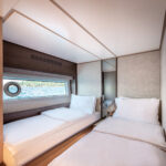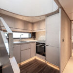 The owner of hull two of this model, who was aboard during my sea trial, noted the similarities with a clear eye. “You know the Wajer might be a little bit better looking,” he said of the Sinot-designed competitor, “but when you take into account the amount of interior space we have, plus the cost, plus the fit and finish level, I think this is a pretty good option.”