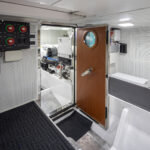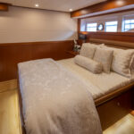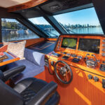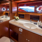 Fourth was a day head in the pilothouse that the captain can access from the helm, and so guests don’t have to go downstairs if the owners are entertaining, another practical design detail that makes a big difference when you’re cruising all day.