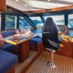 The ability to cruise with a bit of speed is especially practical for the Pacific Northwest market, where southeast Alaska is a popular destination. “We have three areas between here and Alaska that are 30 to 60 miles of open water away,” Parcells explains. “In this boat, that’s fine. You get up early in the morning, make that run in 3 or 4 hours when it’s not rough, and you’re done.” In an 8-knot boat, that run will take all day, and boaters will get caught in rough seas when the wind starts blowing in the afternoon.