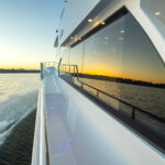The second thing he wanted were wide walkaround side decks so owners don’t have to climb down the side of the boat. “You lose a little bit in interior volume, but not much, and the ease of being able to walk around the boat is well worth it,” Parcells says.
