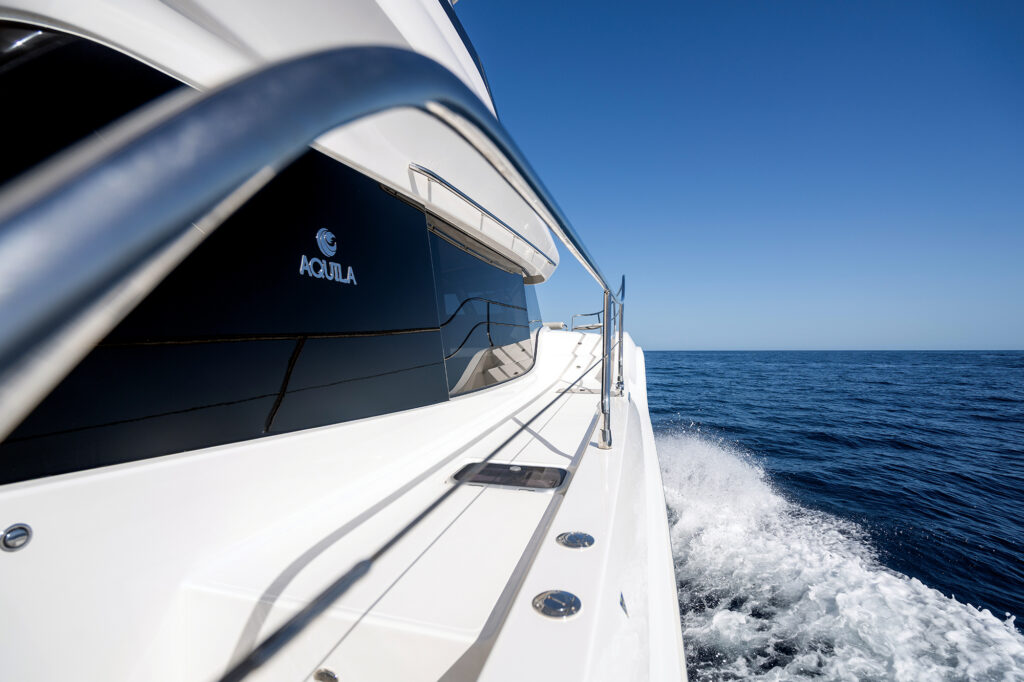 Taken from the dock, the 46 is at once tall and stocky (her beam is nearly half her length) yet somehow sleek. Dan and I chatted about her dockside with Aquila’s Global Brand Director Alain Raas. The son of South African powercat pioneer and Aquila Co-Founder Lex Raas, Alain grew up immersed in multihull evolution. First off, he pointed out that though increasingly common, fixed foil catamarans are not new—especially to Aquila. “We’ve been doing this for over a decade now,” he said. “We started with the 36 coupe.”
