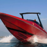 Long a symbol of fast and sexy cars, Ferrari collaborated with Riva in 1990 to create the Riva Ferrari 32. It’s especially hard to miss in flaming Rosso Corsa red, or the traditional color of Italian racing cars, while the big Formula One wing cantilevered forward over the cockpit is more “gee-whiz” than necessity in my opinion. A total of 30 were built, and the styling is pure Ferrari Testarossa, with slat-like air intakes on each side. Sadly—or perhaps wisely—the 32 wasn’t powered by Ferrari 4.9-liter V-12s with 48 valves but by twin Italian BPM Vulcano 390-hp engines with surface drives, certainly less temperamental powerplants in the marine environment. With a top speed of 54 knots, Sotheby’s recently sold one for a quarter of a million dollars.