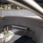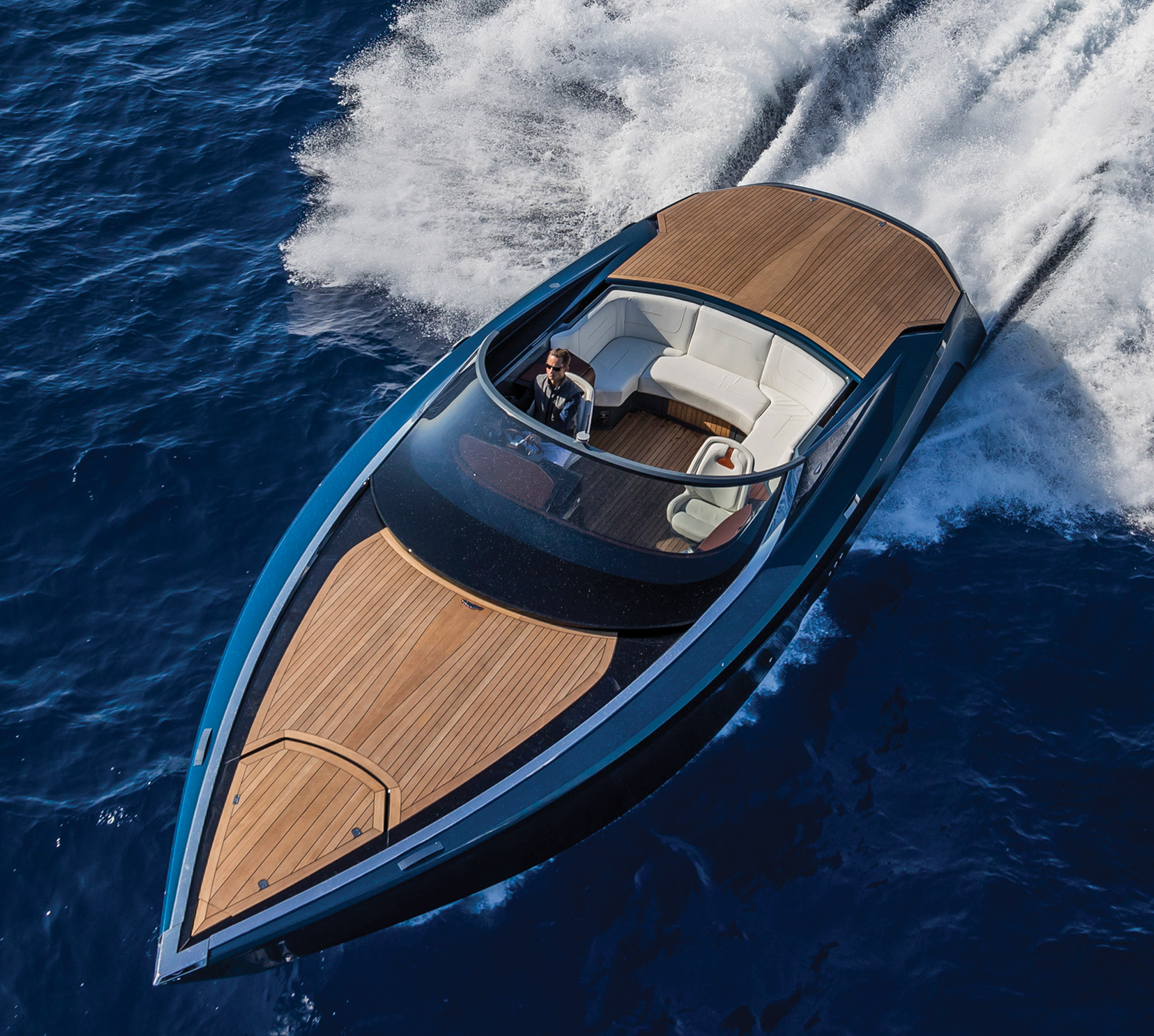 While Aston Martin’s Chief Creative Officer, Marek Reichman, collaborated with naval architects Mulder Design, the yacht came not from the Aston Martin factory in Gaydon, England, but from Quintessence Yachts, a Dutch firm with a shipyard in Southampton, England. Says Reichman, “The AM37 is a pure translation of the Aston Martin DNA into an entirely new maritime concept. The powerboat reflects our values in terms of power, beauty and soul.”