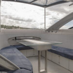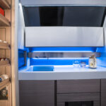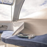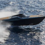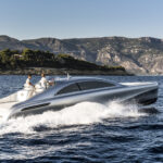 Named for the legendary “Silver Arrow” Mercedes racing cars of the ’30s, the 46-foot coupe wears Mercedes racing silver, of course, but from there takes a sharp turn towards pure luxury over speed.(Rather than 1930s Silver Arrow V-12s, it makes use of 440-hp Yanmar diesels good for 30 knots.) This is a stylish day cruiser, with everything from automobile-style retracting side windows to a most decadent wine cellar. The interior features eucalyptus wood and leather trim, with wraparound seating for 10 people, which is essential since the cockpit has only two seats. There is also a bedroom suite and an opening “pergola” roof forward that hinges the entire windscreen upwards. Only 10 Edition 1s will be built, with each going to a different country, so plunk your $2 million down soon.