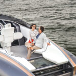 Drawing on the speedboat aura of the classic Riva Aquarama, the AM37 features planked teak decking fore and aft, a retractable carbon fiber Bimini top and retractable swim platform. The wraparound windscreen is a single piece of sculpted glass, and a three-panel sliding deck unfolds to protect the cockpit when not in use. Other necessities aboard this uber-luxe day boat are a Nespresso machine and a remote-controlled anchor winch, a must in the absence of bowrails or even a forward hatch for foredeck access. You, too, can be 007, starting at $1.6 million.