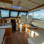 When you compare the 372 ($880,545 base price) to the original Back Cove 37, not much has changed, according to Bloomquist. It’s as much a well-rounded vessel as her older sister, with a generous stateroom and cabin and plenty of space in the salon, which seats seven passengers comfortably in addition to another two at the helm.