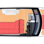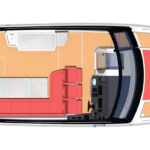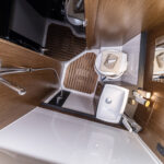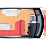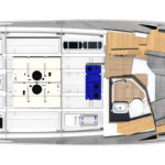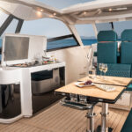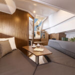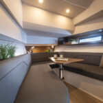 “It has the Bavaria style and quality, but the concepts are very new; you didn’t find them on any of our older boats,” said the Head of Product Management, Norbert Leifeld. The bow includes two layouts for owners to choose from: a flat foredeck featuring a large sunpad, or a hi-lo table flanked by seating for six. Below decks, the 33 offers the comforts of a weekender, with a settee that converts into a berth and a stand-up wet head. “It has our brand DNA, so that means it’s a safe boat for families,” added Leifeld. “You have hand rails wherever you need them and enough space to sit down.”