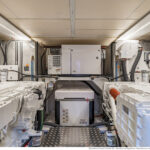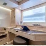 A hull optimized for 9 knots is not optimized for planing. Needing to satisfy that top speed requirement, Beneteau offers just the one engine option, a pair of 730-hp MANs. The engine room is an excellent space, beautifully engineered and fitted out with a thoroughness and care that will be immensely reassuring to those owners who really plan to use the 62’s range and go cruising—those owners who, in other words, don’t actually need all that horsepower, because they will be using the yacht as a displacement passagemaker.