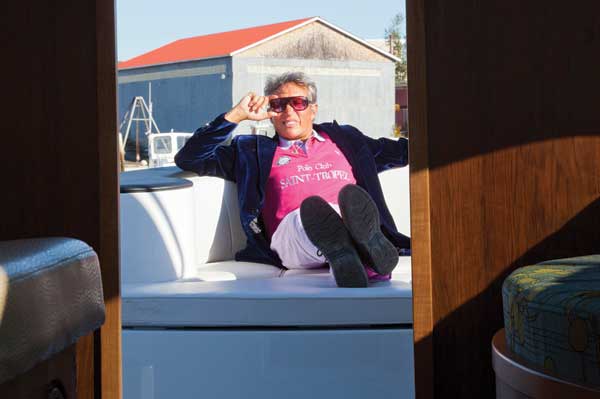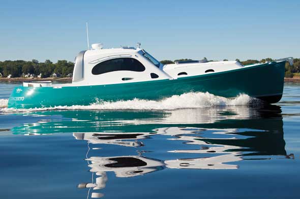 At the time, the boat’s 260-horsepower Yanmar only had 34 hours on it. Sawyer had launched her six months before in Maine and then trucked her down to Florida (where she was displayed at the Ft. Lauderdale Museum of Art) and then trucked her back. (“The boat’s done the entire east coast on the back of a truck,” Sawyer quipped.)