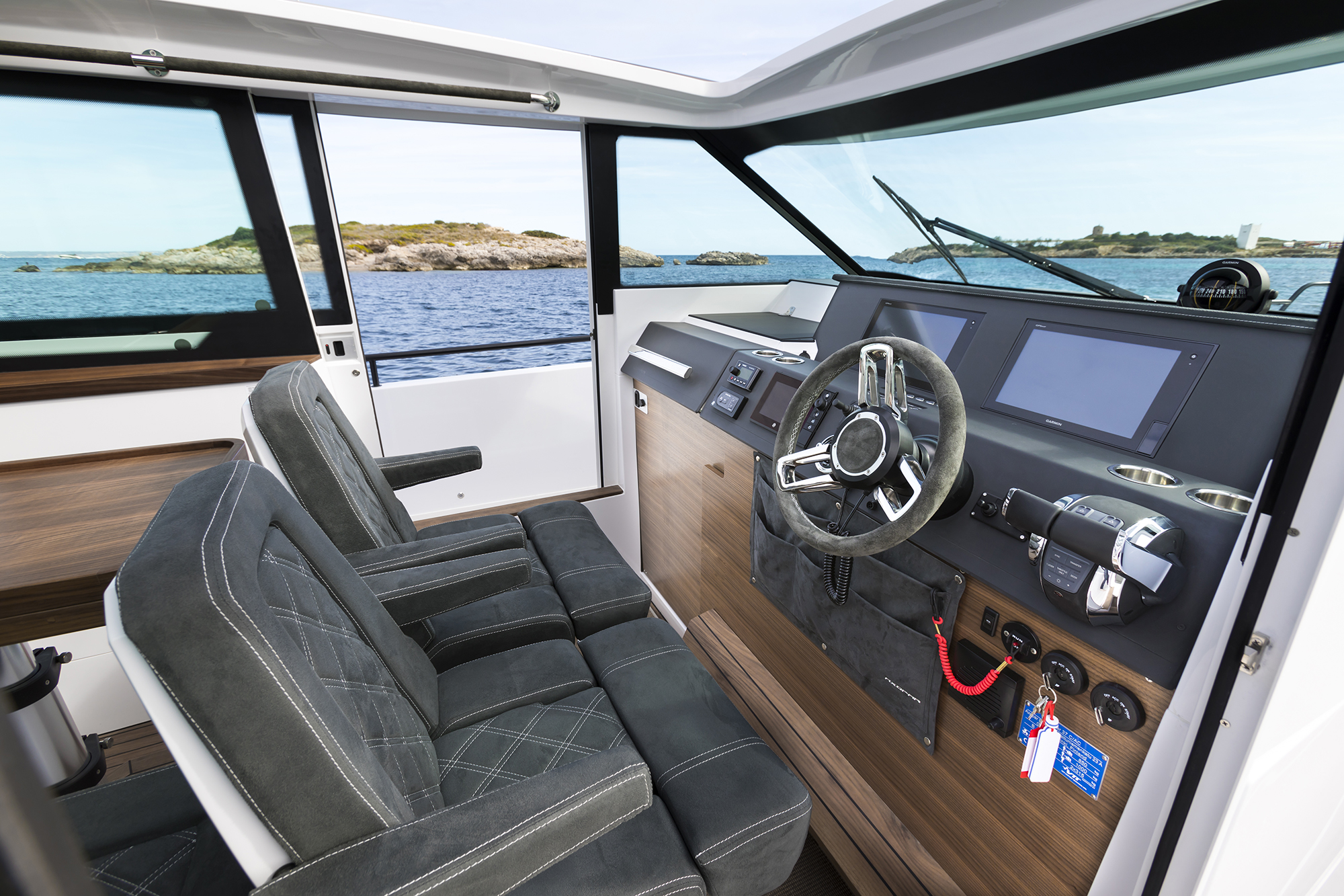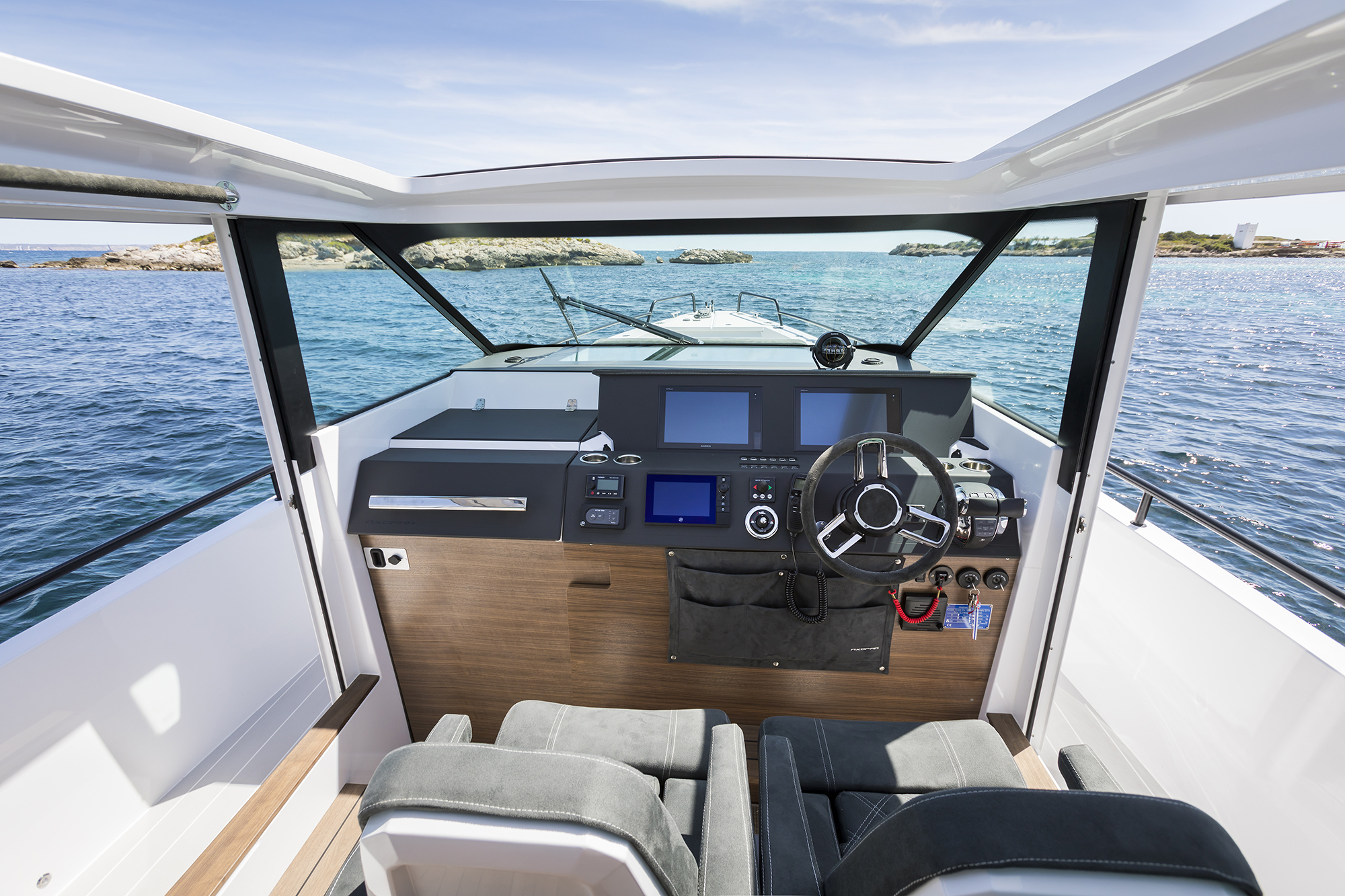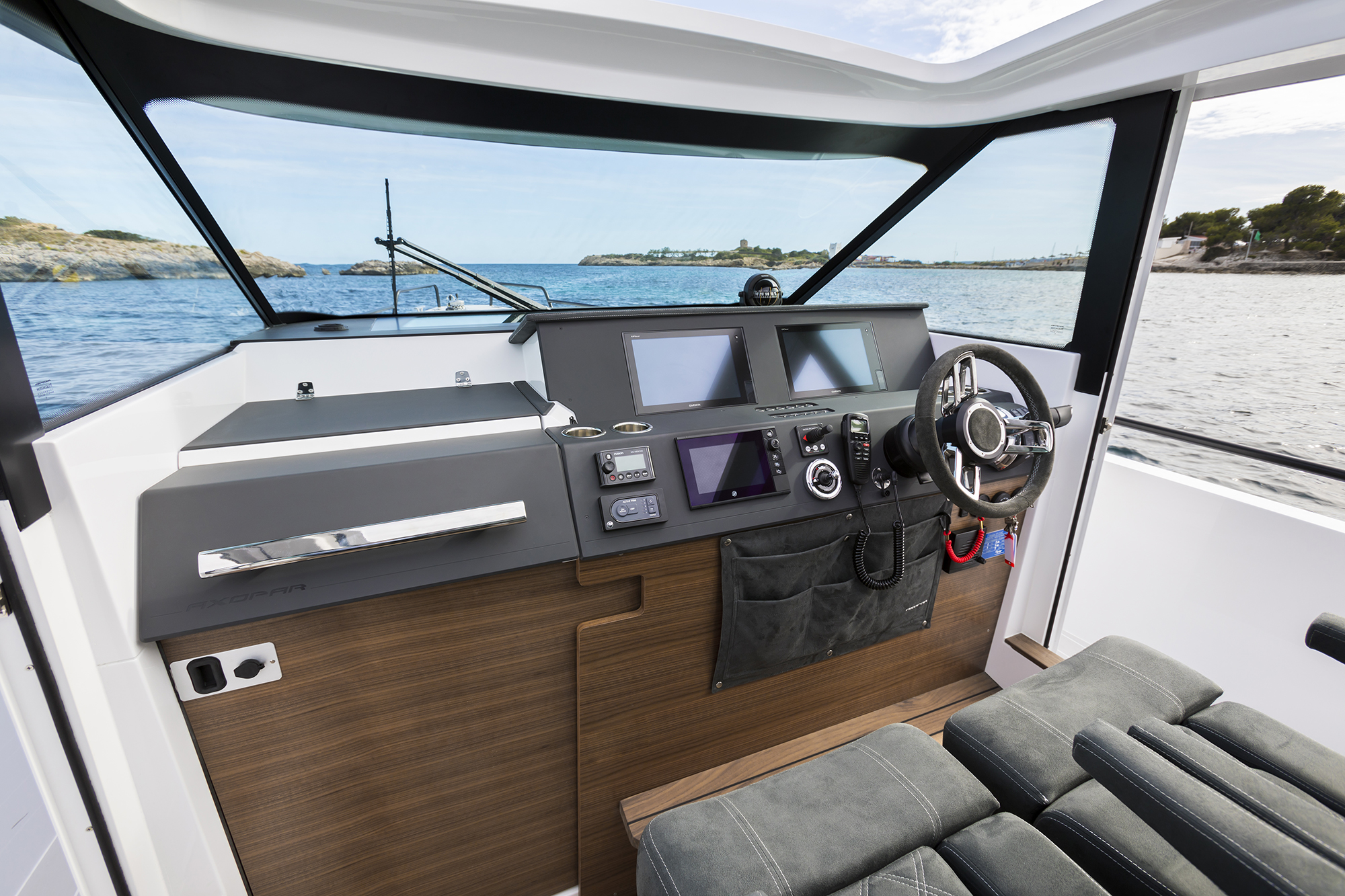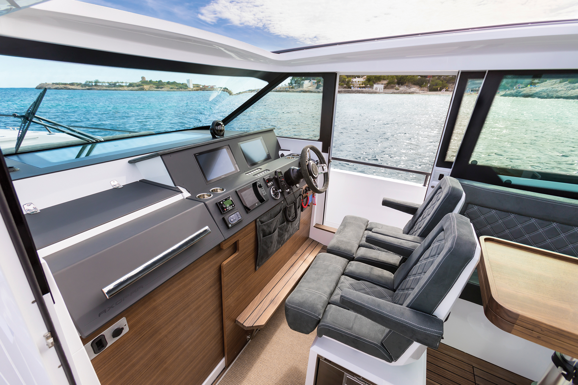 The wind was wispy as golden morning light gleamed off what should have been the calm water of the bay. It turned out that we weren’t the only ones itching for a boat test; dozens of motoryachts crisscrossed the water with prospective buyers aboard. The armada of new models churned the water into a confused mess. The conditions were perfect for testing what Axpoar claims is a high-performance craft.