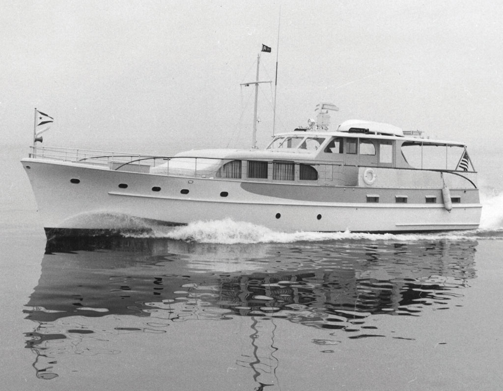 Caroline IV was launched in 1958 at the builder’s Manitowoc, Wisconsin yard. The steel-hull motoryacht cruises at a respectable 10 knots all day long. You could argue that the 63-footer that followed was the “prettier” boat. Just don’t let the lovely Caroline IV hear you.