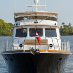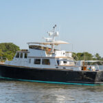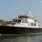 The classic raised pilothouse profile of this 72 hearkens back to the commuter yachts of New York and Long Island Sound.