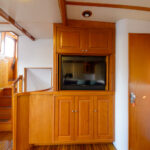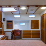 The aft doorway leads into the raised pilothouse from the master stateroom.