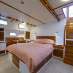 The master stateroom has been thoughtfully designed with plenty of storage space; it also features several opening hatches and ports.