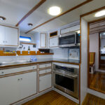 Appliances-a-plenty: The galley includes a Fisher & Paykel refrigerator, GE “Café” full-size oven, Kitchen Aid induction cooktop, Badger garbage disposal, and Whirlpool stacked washer/dryer.