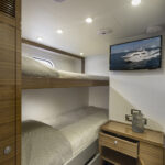 The four-stateroom, three-head layout includes a queen berth forward in the VIP, side-by-side berths in the port stateroom, and upper-lower berths to starboard—meaning she can accommodate a whole family, and then some.