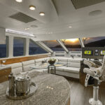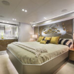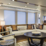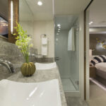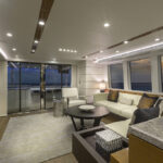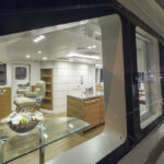 Stepping onto the teak-planked swim platform—which doubles as a hydraulic lift for a 1,000-pound tender—it provides access to the engine room and crew’s quarters.