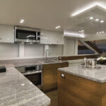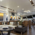 The working galley and forward dining area are equally proportioned, providing an enormous amount of usable space with great flow when a crowd is aboard.