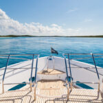 Arriving at Lost Boys after a short hop from the Staniel Cay Yacht Club aboard the yacht’s Yanmar-powered Williams Tender, Jones explained a full itinerary of events that would help establish a baseline for the owner who would be chartering the yacht. Staniel Cay was chosen because of its convenient location by air and the variety of family activities available in the surrounding waters. Boarding the yacht from the swim platform, the open garage door beckoned with watertoys—but they would have to wait until later in the day.