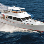 Grand Banks yachts used to be all about wood, teak in particular. Now, although there’s a bit of teak trim for tradition’s sake, it’s all about Gurit Corecell, resin infusion, and hulls that are light and fast.
