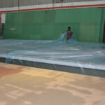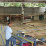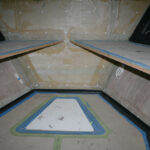 That’s right—this is a resin-infusion setup in the early stages. Large panels, when completely infused, are stacked in a storage area, ready for shaping and trimming for interior floors and bulkheads.
