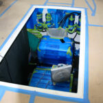 Protective tapes and other materials are applied to equipment to protect it while Grand Banks employees install other pieces of equipment. This is particularly important in engine rooms where paint can be chipped off engines or mechanical housings gouged or scratched.