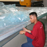 Computer-controlled, fully-automated routers cut resin-infused panels precisely into necessary shapes prior to installation.