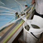 As it is with many other manufacturers, the resin-infusion process at Grand Banks is part science, part art. The initial setup, which involves the strategic positioning of hoses, pipes, valves, and a variety of fabrics and other materials, is critical to success.