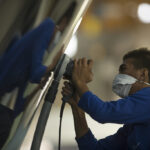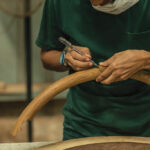 Most of the power tools at the Grand Banks plant are fitted with extraction hoses that feed a giant dust collection system. Face masks are used in many situations as well.