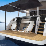 First things first, let’s start at the back of this boat. In recently released renderings Absolute is showing that their in-build Navetta 64 will be available with an optional beach club–a first for the Italian builder and a rarity on vessels of this LOA.