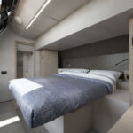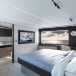More impressive than the watertight beach club doors that are now the norm on larger yachts, is the space inside those doors. During the day you can have a large, aft facing couch within arms reach of a fridge. A large television looks to be well placed so you can watch the game and the waves all while hiding from sunburn. At night, the couch can convert into a queen berth with the best views in the house. When out on the hook this will likely be the stateroom worth fighting for. The idea of waking up, sliding open the door and beginning your day with a morning swim is the stuff summer dreams are made of.