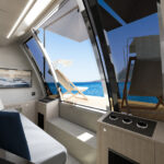 The salon of the 64 looks to sport larger-than-ever windows and a superyacht-style helm on centerline with near 360-degree views of the water. With a combination of fixed and loose furniture the salon is a style departure for the brand, and in my view, a welcome one.