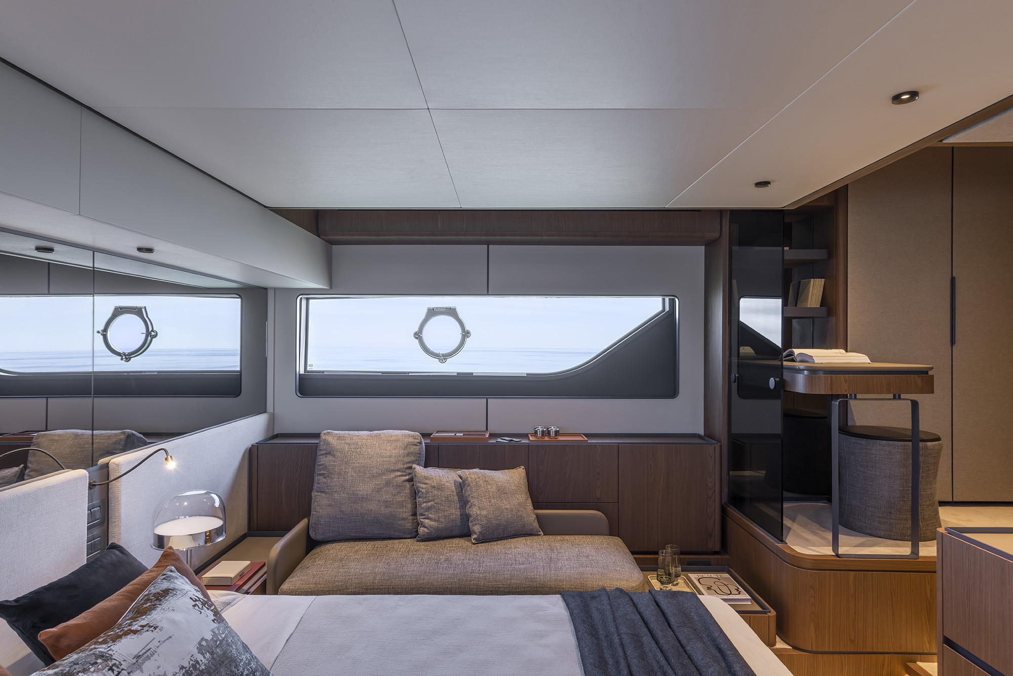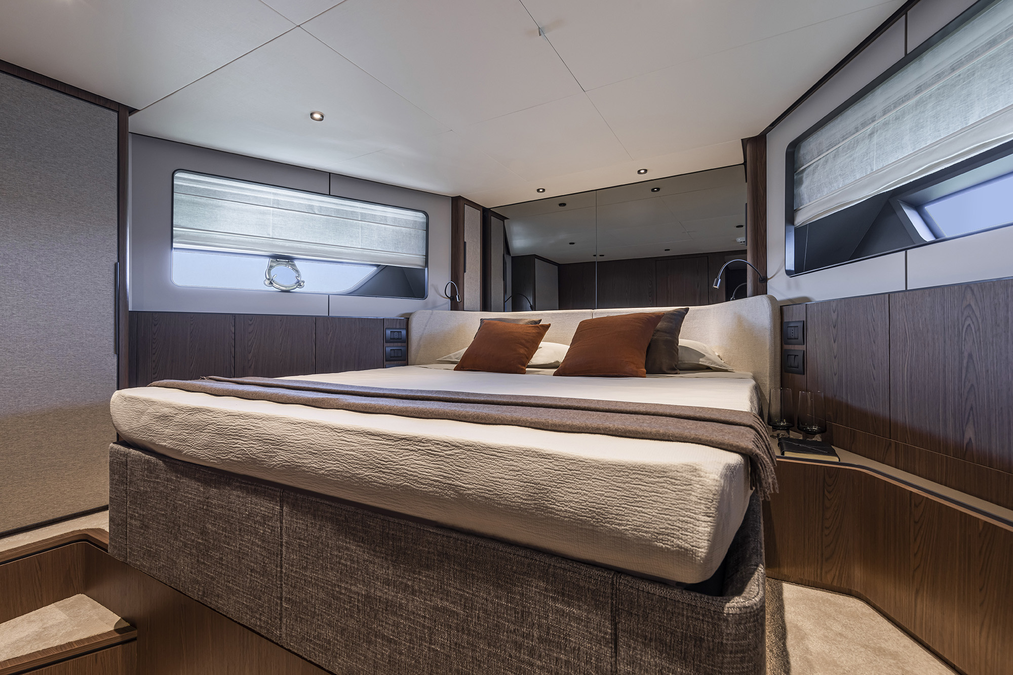 In common with most of her sister Ferrettis, the 580 comes with a choice of two interior design schemes, dubbed ‘classic’ and ‘contemporary’. It is perhaps a symptom of the brand’s quietly confident conservatism that the differences between them are not immediately obvious to the untrained eye. The contemporary look is cooler, and perhaps the classic warmer, but they’re both nice. They won’t date. And the fit-out quality is exactly what you expect from this shipyard—solid.