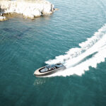 The Alen 45 features a walkaround deck that maximizes the use of exterior space; it’s for the boater who would rather experience the sea than feel confined. High bulwarks will keep passengers secure and protected from spray, and the V-shaped hull is designed to ensure steady cruising in all conditions. Twelve guests can fit comfortably on board and will be well accommodated by the al fresco dining area and wet bar. There is ample space on the front and aft sunpads.