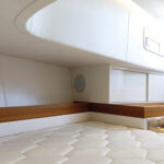 The 45 doesn’t pretend to be anything other than a dayboat. Cabin space is tight, but the head, fridge, and double berth allow for a comfortable overnight in a pinch. The 45 successfully demonstrates that luxury can be delivered simply.