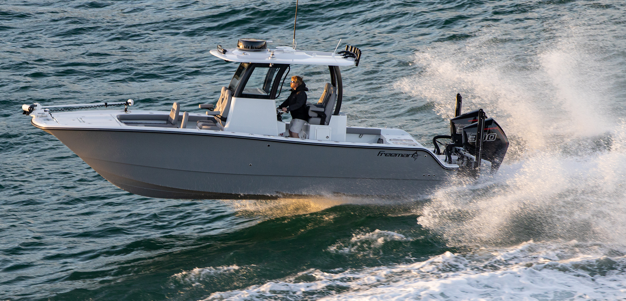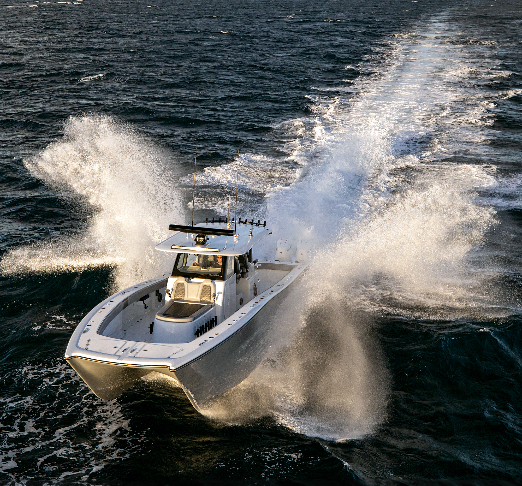 Eventually, a buddy suggested Freeman head offshore with him aboard a center console catamaran. “He said, ‘They ride way better,’” Freeman recalled. “I’m like, that’s the ugliest thing I’ve ever seen—a cat-hulled skiff—23, 24 feet long. But I was just like, Oh, dear God. This is better.”