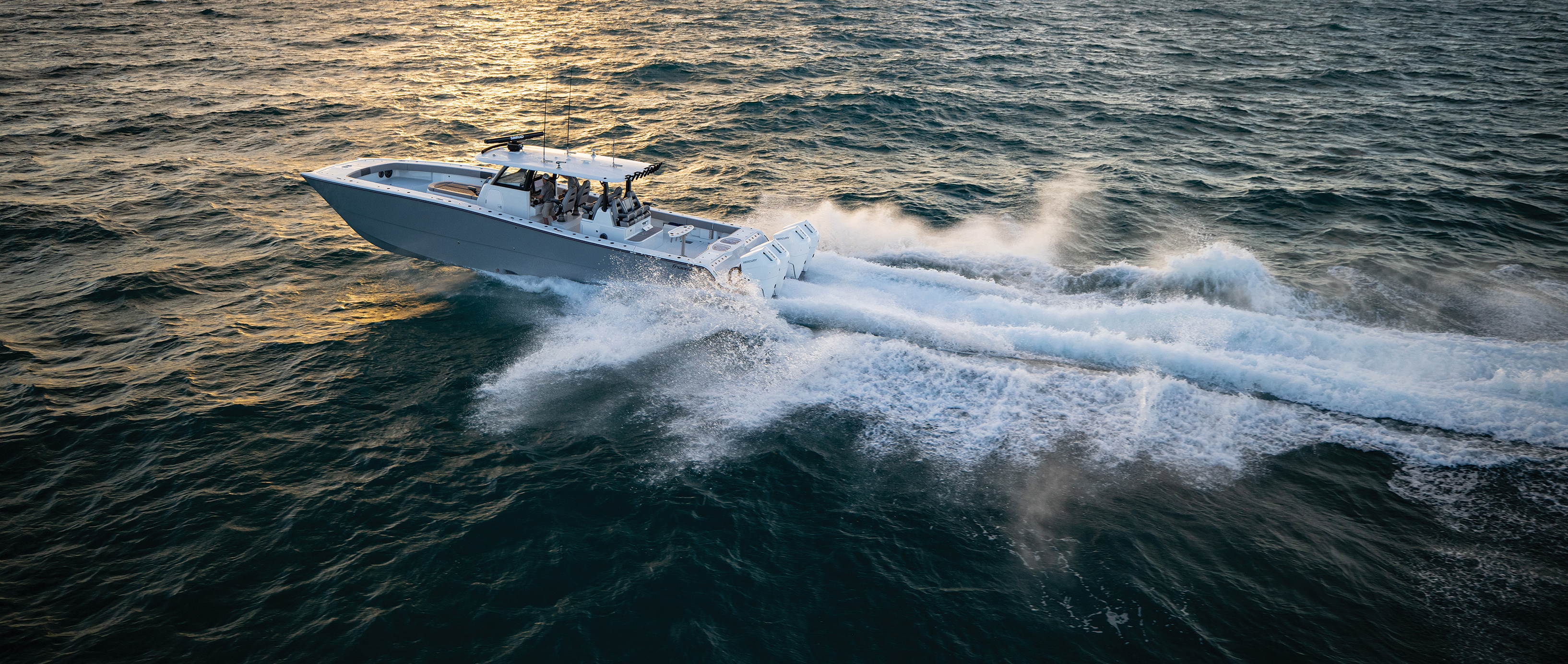 Freeman’s followed the 33 with a 34—basically a 33 with a swim platform and a stepped hull. He then stepped back in size with a stepped hull offshore 29. “An incredible boat,” said Freeman, “But the problem in 2010-2011, was getting someone to pay $200,000 for a 29-footer. Freeman wasn’t well-known. People weren’t just lining up. You could go buy a 28 or 30-foot high production boat for $170 grand. And I was like, well, I’m not giving these boats away for $160 grand.”