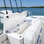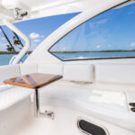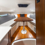 As thankful as I was for the boat’s massive proportions while underway, there were a couple of moments I wished she were just a bit smaller. One was when docking. Capt. Tom Jagucki, a seriously salty and experienced captain, who also happened to sell the first Maritimo in the United States, quietly and confidently pulled us out of and into a slip so tight I swear you couldn’t fit a sandwich between our rub rail and the gleaming Zeelander we were alongside. He credited the boat’s maneuverability for his successful, windy extraction, but he must have ice water running through his veins—because he and I know that both man and machine deserve credit.