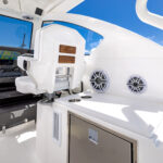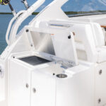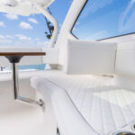 Still, I enjoyed the short chore of helping to rinse down the 75. It helped me to imagine being an owner of this model and allowed me to daydream about grilling in the cockpit as friends buzzed around in the dinghy or played with SeaBobs. I could daydream about kicking all of them off and having my family settle into the four staterooms (two with single berths, a VIP forward and master amidships) for a night on the hook in the Caribbean. I could see everyone enjoying a movie night in the salon or listening to idle chatter on the VHF while taking in panoramic views with a cup of coffee from the bridge.