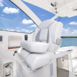 Navigating Ft. Lauderdale’s New River was another opportunity to see how a confident captain and masterful maneuverer like the M75 can work as a dynamic duo. On the day of our test (and in fact on most days here in general), the New River’s bridges, boat traffic, blind turns and various flotsam were not for the faint of heart. But with help from the thrusters, the responsive 75-footer held station on a dime, shifted and pirouetted in place like blender blades, and idled through a procession of boat traffic at just the right speed.