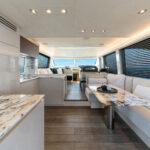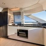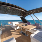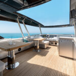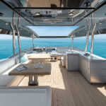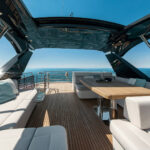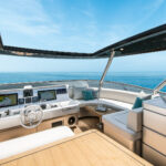 If it sounds a bit prescriptive, it’s not. There are a surprising number of customization options available throughout the range, from the usual fabrics and finishes to the choice of engines. For these three new models, the shipyard is working on the designs of enclosed flybridge structures for owners in particularly steamy parts of the world. The first one, for a 70, was nearing completion in the yard at the time of our visit.